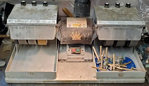 Fred runs a professional-grade lapidary workshop with the following equipment: