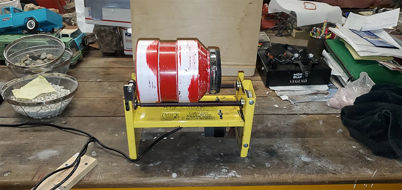 2016 — Started tumbling on the property with small 3 lb barrel tumblers.