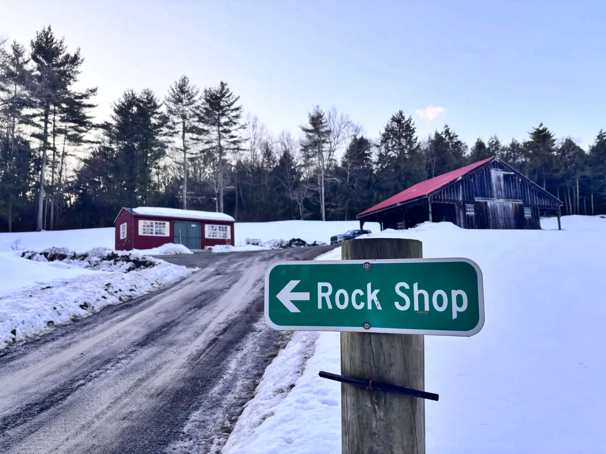 The last stretch is a gravel road — perfectly passable in a regular car (though you might drive with caution during spring mud season). Search "Fred's Rock Shop" on Google Maps, or call Fred at (802) 376-7313 if you need help finding it.