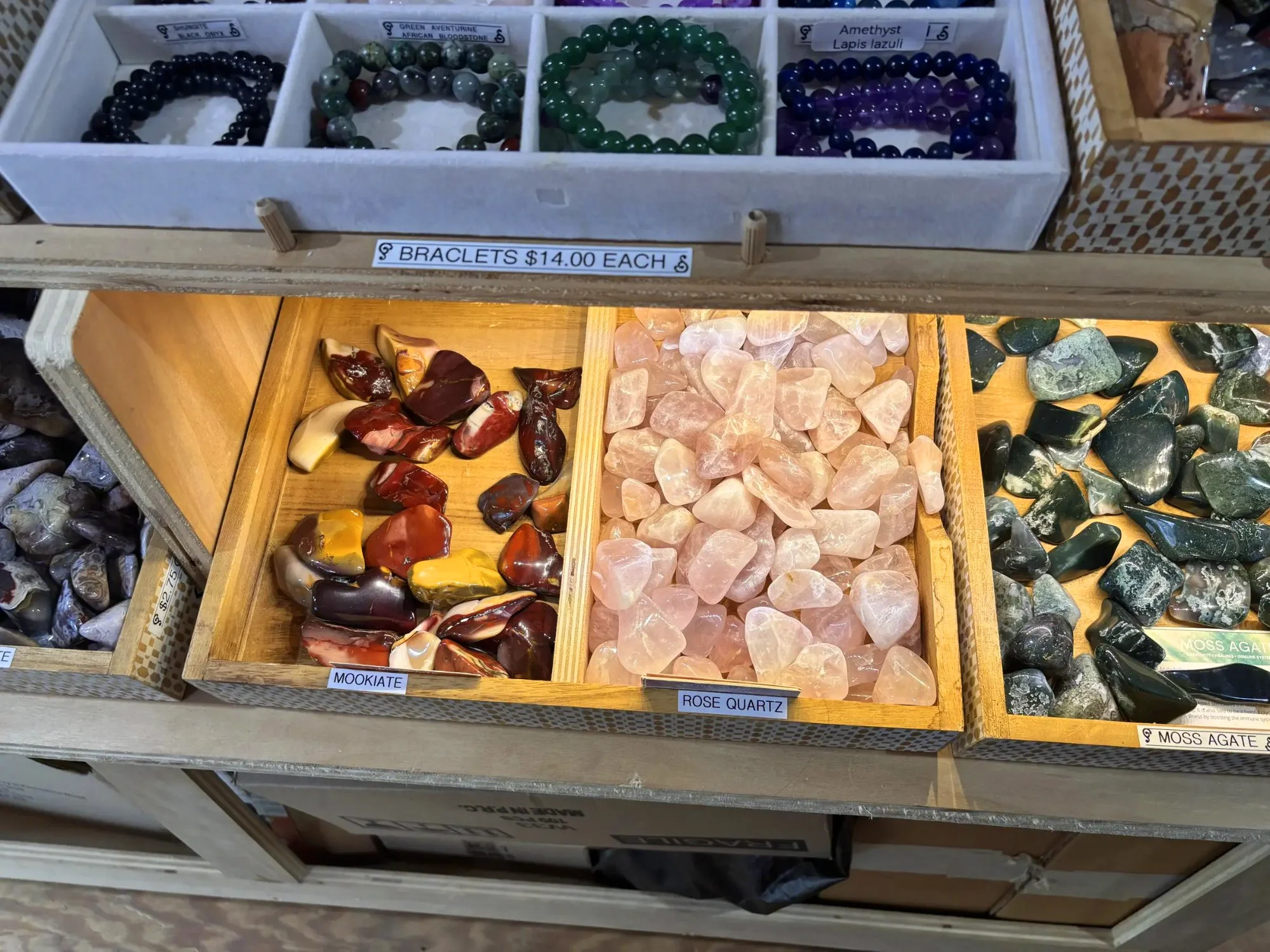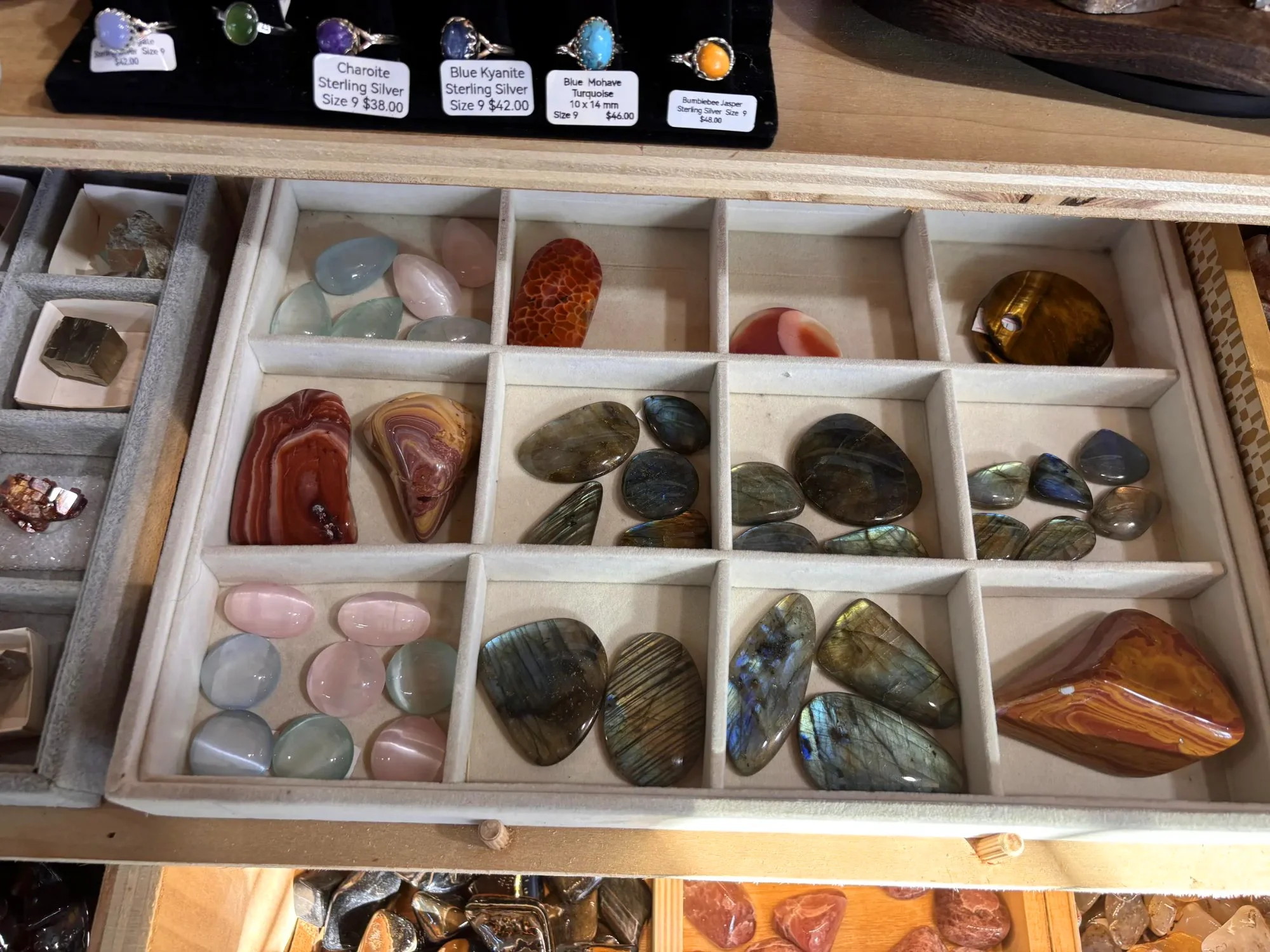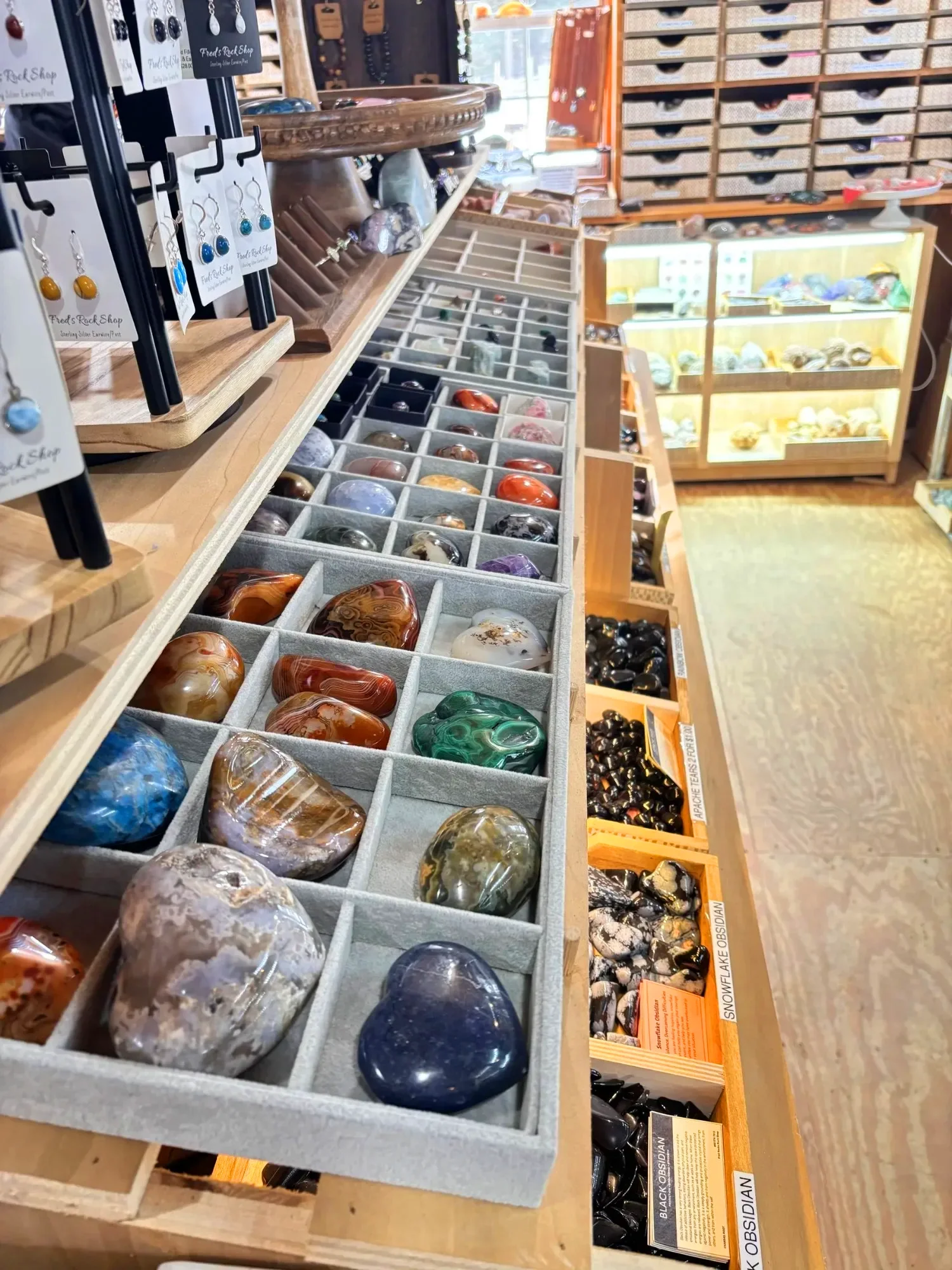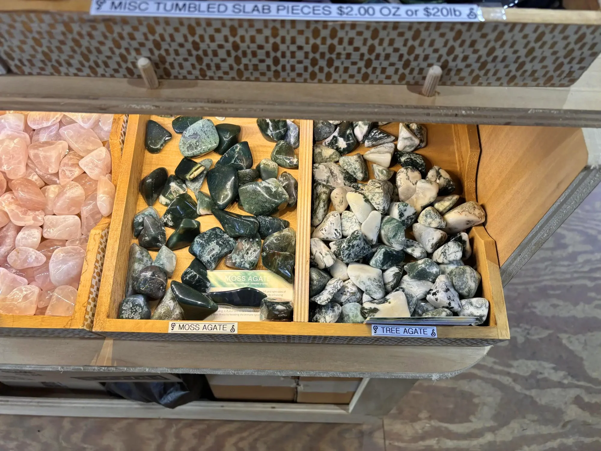 Offering a stunning selection of polished/rough semi-precious gemstones, crystals, and mineral specimens — plus handcrafted jewelry and a full working lapidary shop for all your needs.