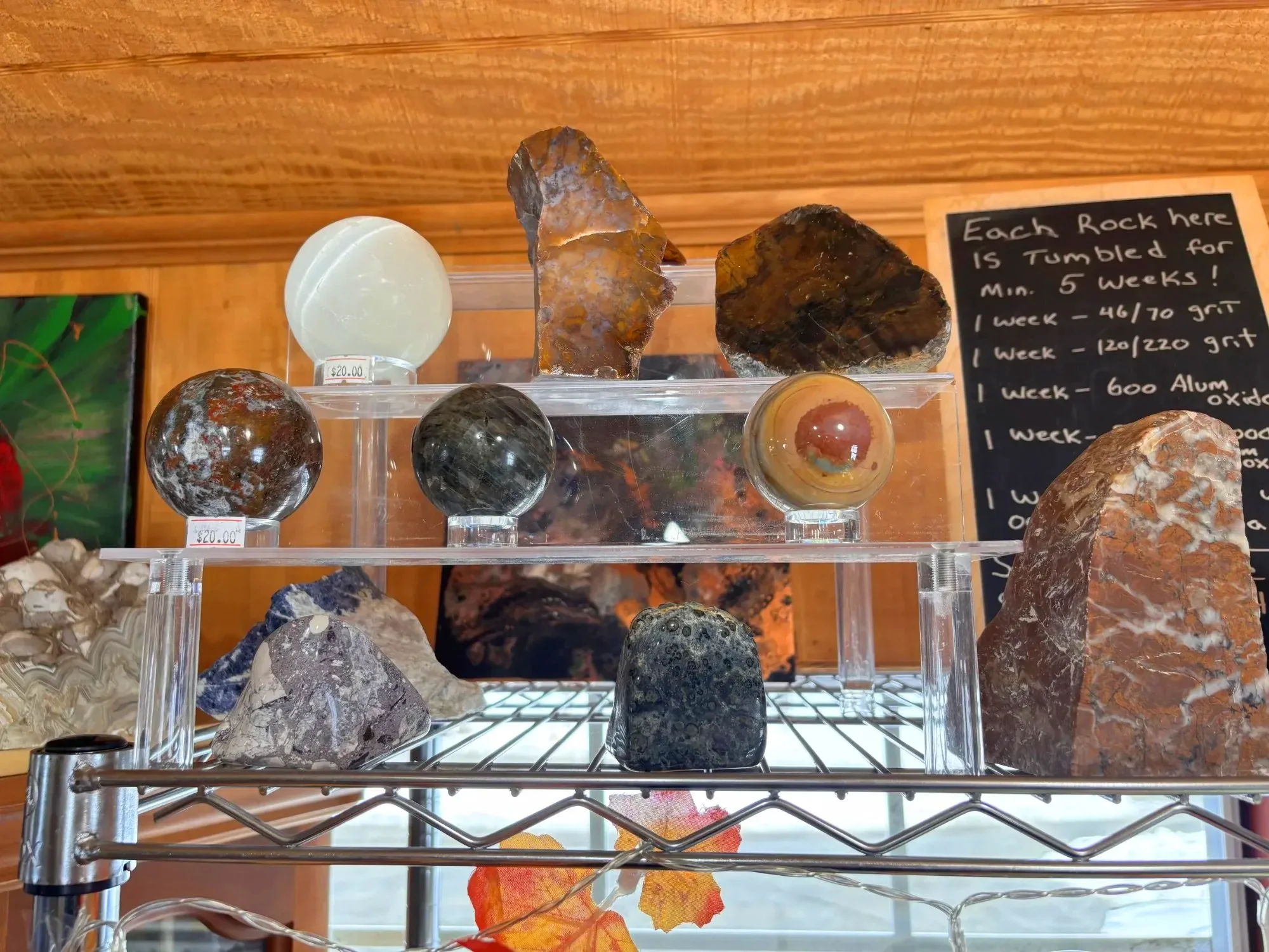 Fred McKenny has been tumbling, cutting, and polishing rocks on his property in Putney, Vermont since 2016. What began as a backyard hobby has grown into a full lapidary workshop. As a member of the Keene Mineral Club, Fred has access to rockhounding sites most collectors never see. Nearly every stone in the shop has been processed right here on Pine Banks Road.